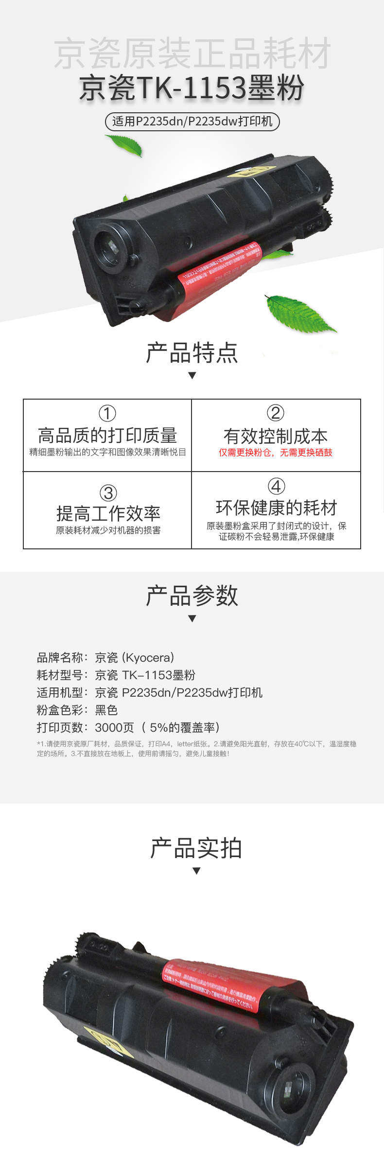 • 商品名称:京瓷(KYOCERA) TK-1153墨粉组件适用P2235dn/P2235dw打印机