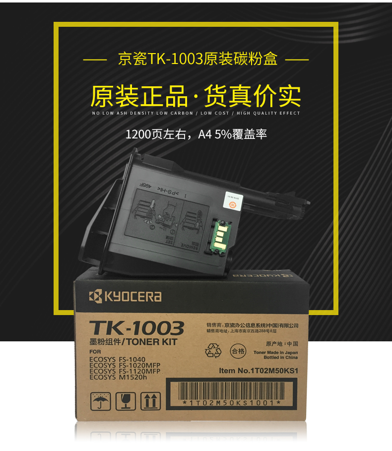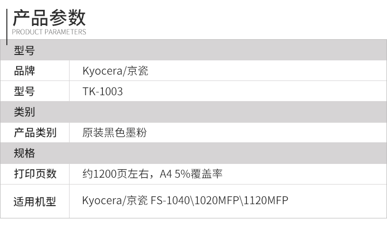 • 商品名称:原装京瓷TK-1003墨粉盒适用FS-1040MFP/1020MFP/1120MFP打印机