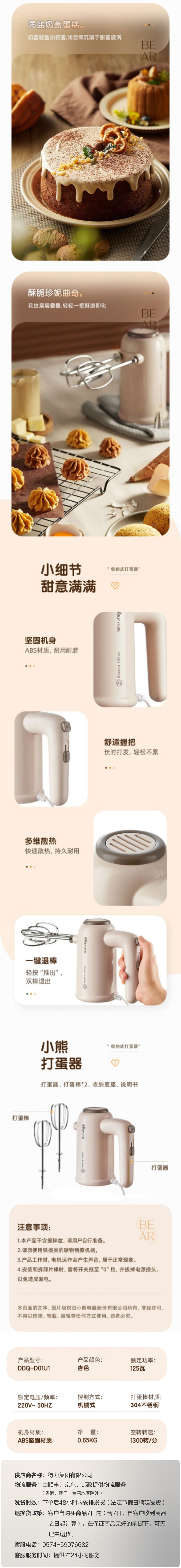 • 商品名称:小熊家用电动打蛋器DDQ-D01U1无底座(台)