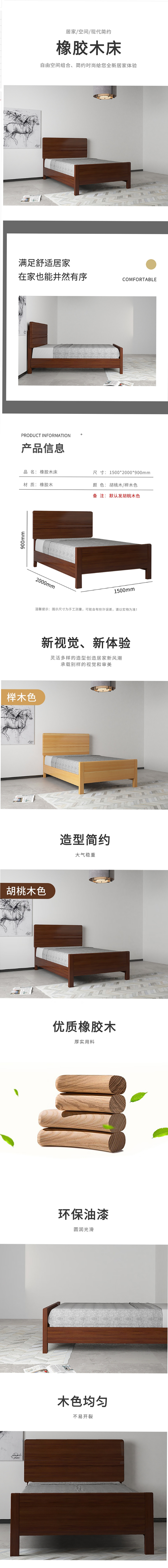 • 商品名称:优企 橡胶木床组合家具现代简易宿舍卧室家具床 1.5米
